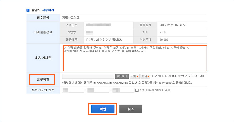 * 게임사 답변 등 사고관련 자료가 있다면 첨부파일에 등록하시면 됩니다.