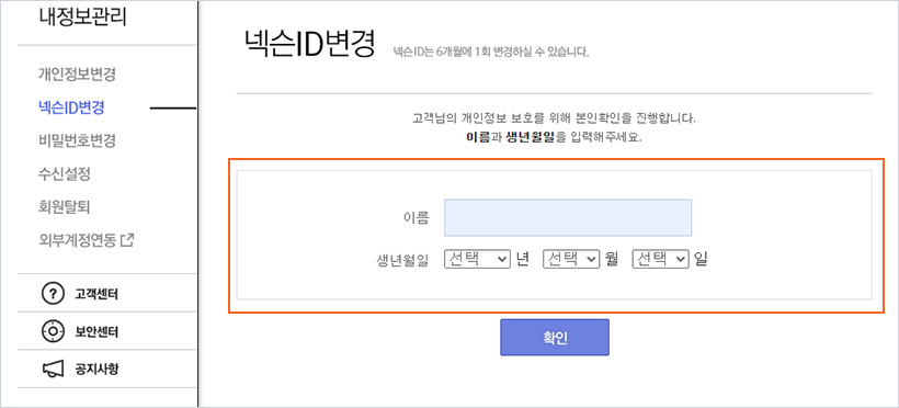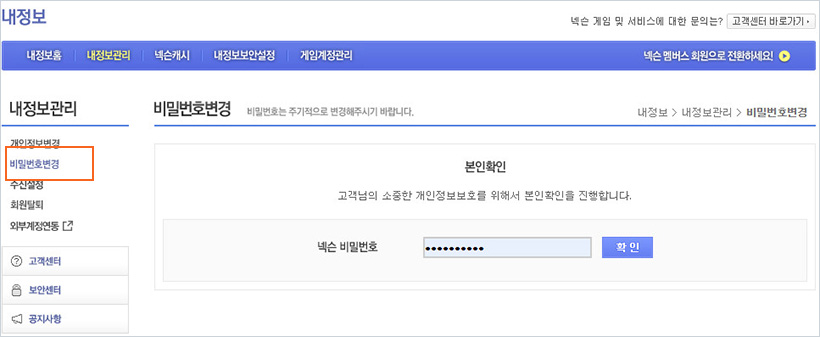 2. 넥슨 정보 변경[넥슨 ID 로그인]