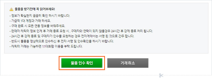 판매자와 연락을 하시면서 게임상에서 판매자로부터 물품을 받습니다.