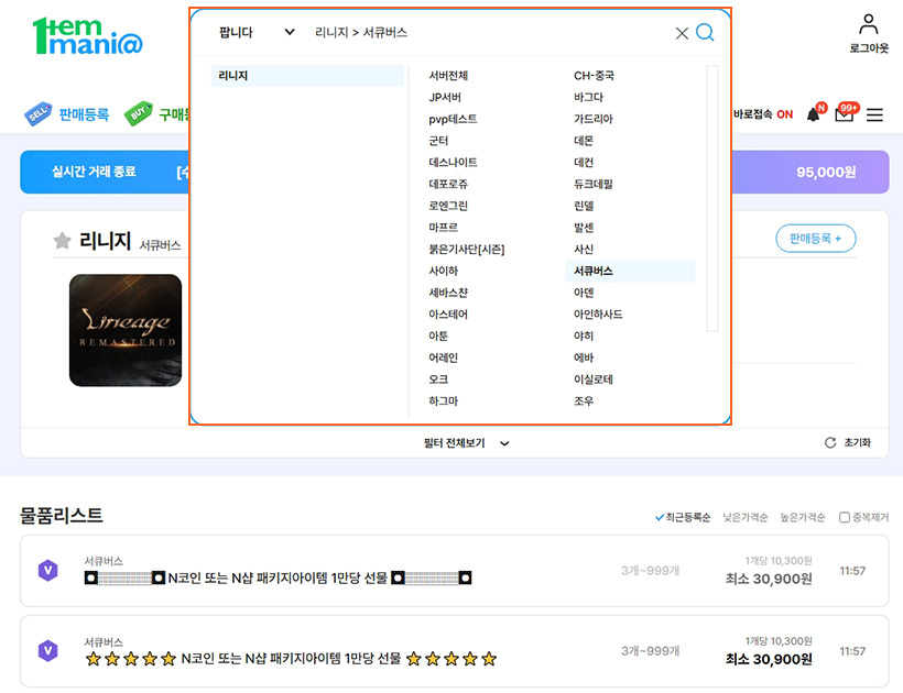많은 양의 물품을 거래하고자 할 때 한번의 등록으로 여러 거래자와 쉽게 거래할 수 있도록 아이템매니아가 업계최초로 개발한 시스템입니다.