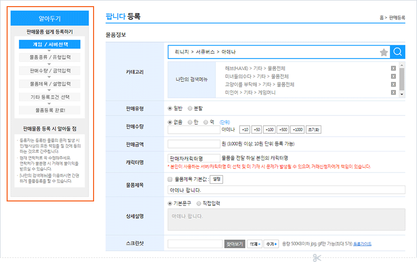 팝니다 등록페이지의 팝니다 등록 알아두기를 먼저 꼼꼼히 읽어보세요.