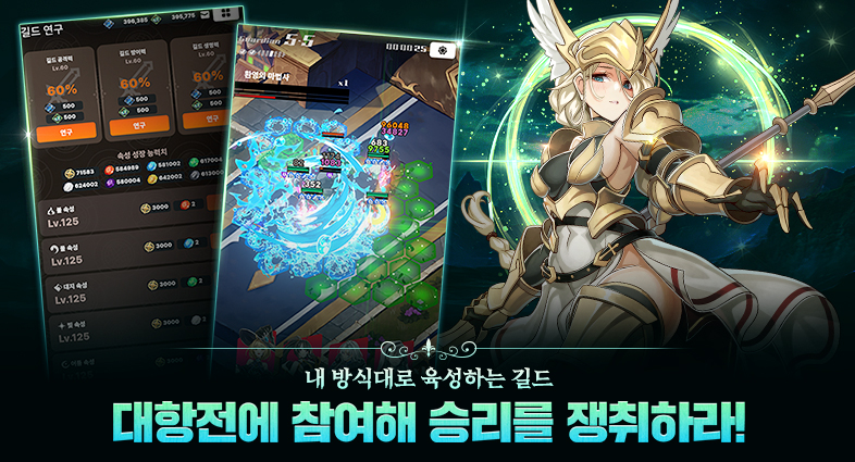 플레이어들이 벌어 온 재화로, 길드를 더욱 강하게 성장시키세요!