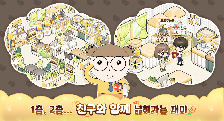 친구와 함께 카페를 확장하고, 루프탑까지 꾸미면 대박 카페 완성!